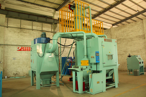 六 砂料分選 通過回收上來的砂料進入砂料循環(huán)系統(tǒng),該砂料循環(huán)系統(tǒng)配備了風選裝置,通過風選裝置,破損的砂料及粉塵被分離出來,風選的風量大小可以調(diào)整。通過風選后的砂料進入到噴砂倉中,粉塵被分離出去,進入到除塵器中。該分選方式是采用重心、高速旋轉(zhuǎn)的方式。 有螺絲固定。維護門能讓操作者便利地進出室體更換工裝夾具。 工件進入工作位置后,所有的噴咀移都由擺動電機擺動,方便工件噴砂的均勻性。